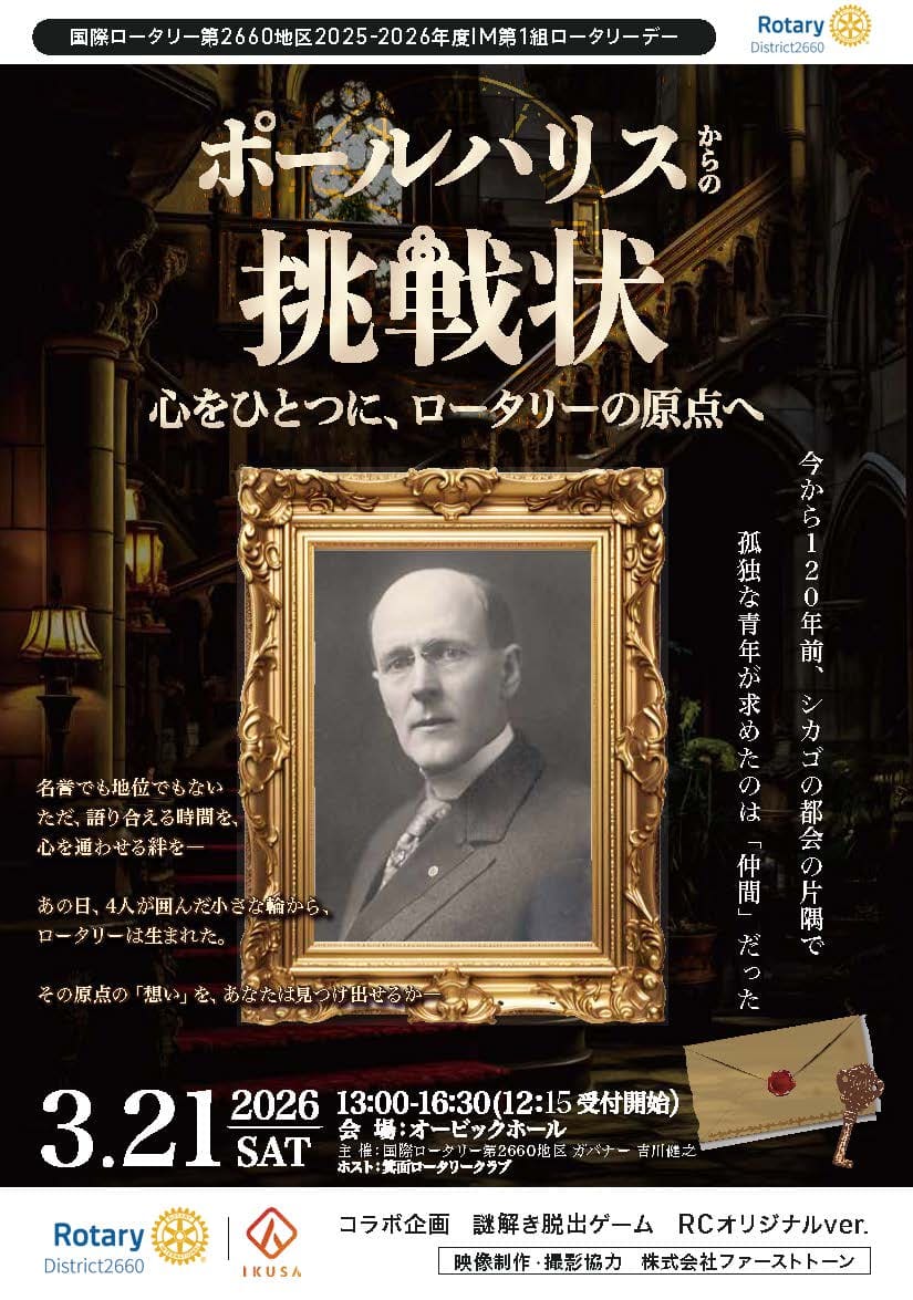 | 1 | 2026年3月21日(土) 13:00~16:30(受付 12:15~) |