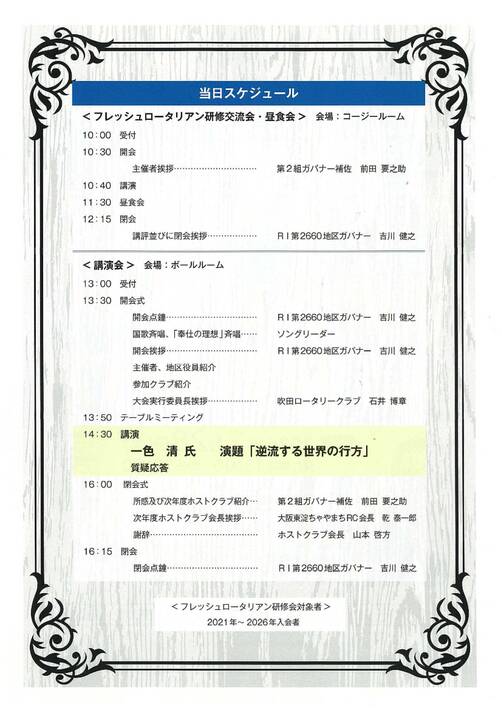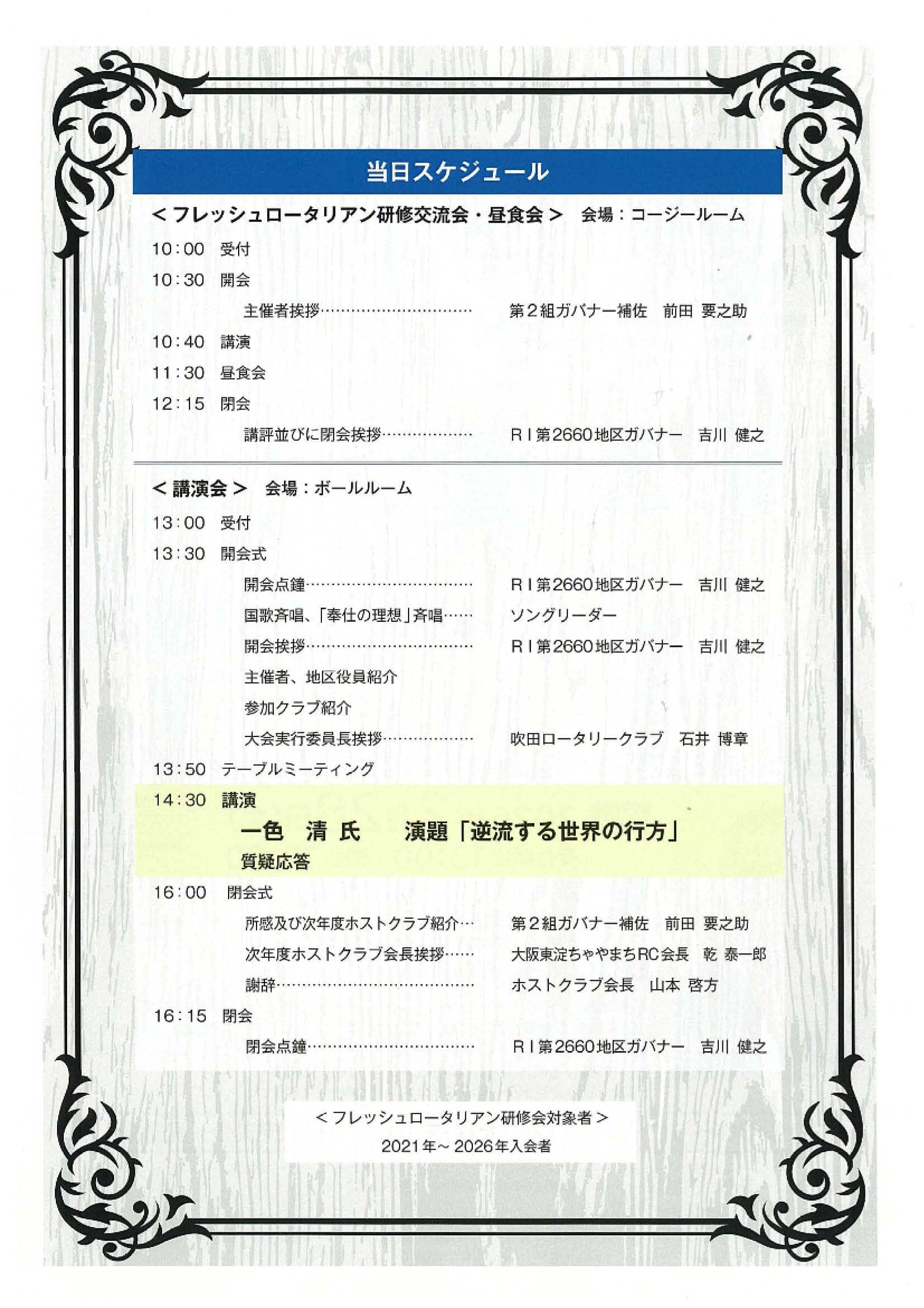 | IM | 開催日時 | ホストクラブ | ロータリーデー会場 | チラシ |
