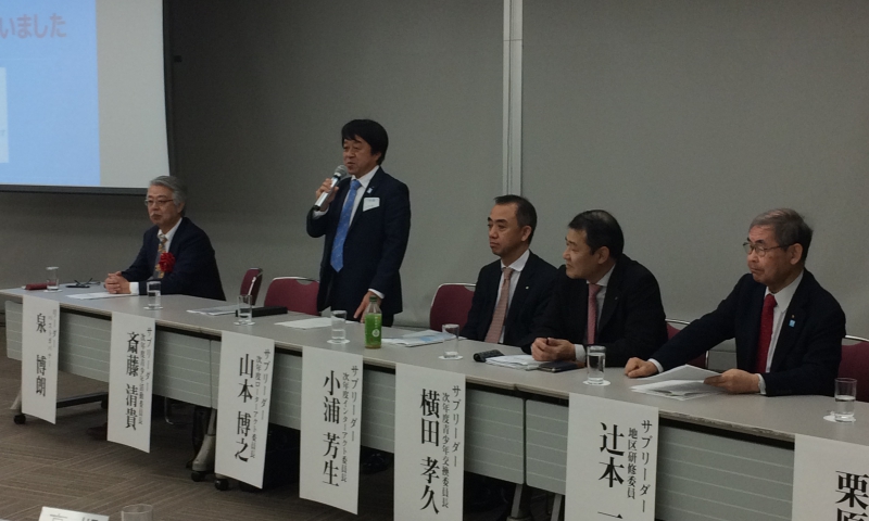 また、従来は講演料などに用いられてきた登録料を、IM第4組全体の奉仕活動として、昨年度の熊本大地震で最も被害が大きかった益城町の復興課が取り組んでいる「未来トーーク」という、若者たちがこれからの益城町の将来を考え、復興に寄与しようとする斬新なプロジェクトの推進費用として寄付することにし、3月4日に現地を訪問し、益城町の副町長ご臨席のもと、支援金を若者代表の方々にお渡ししてきました。そのニュースは現地の新聞のみならず、2日後の朝日新聞大阪版にも取り上げていただき、ロータリークラブが、地域に貢献する様子をアピールすることができました。